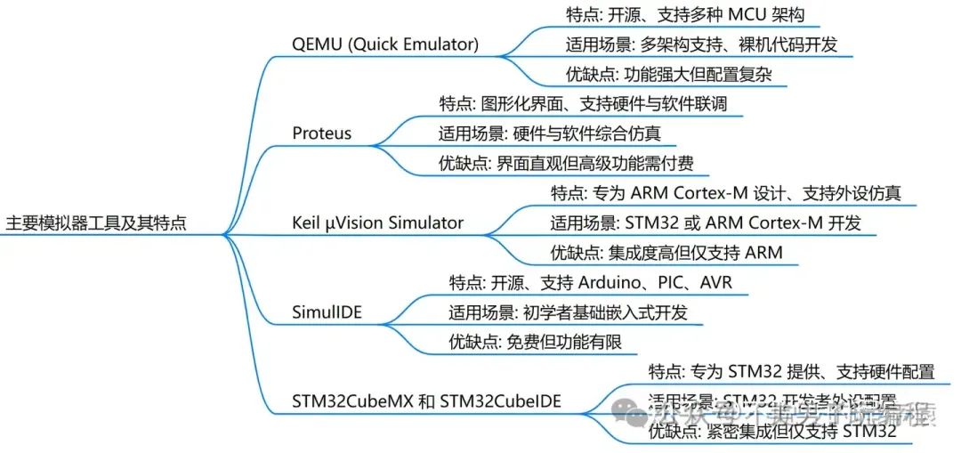 - 优点:功能强大、支持多平台,支持多种嵌入式硬件模拟,开源免费。
