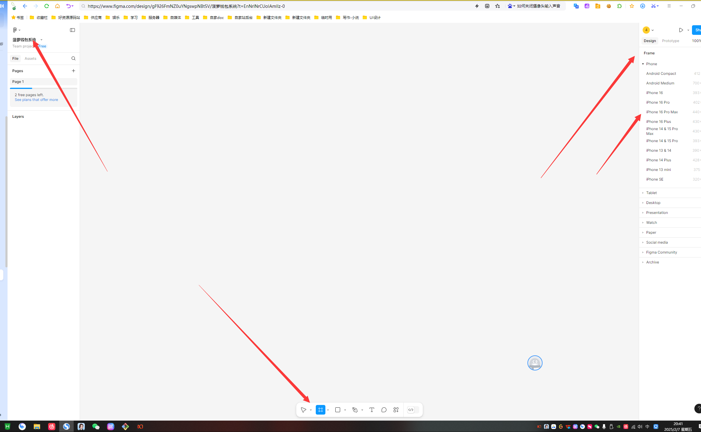 选择#图标,打开选择frame 选择画布,我这里选择iPhone 16 promax,