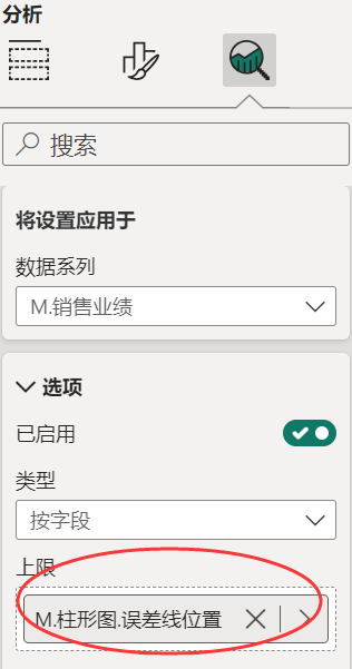 误差线的上限存放如下度量值: