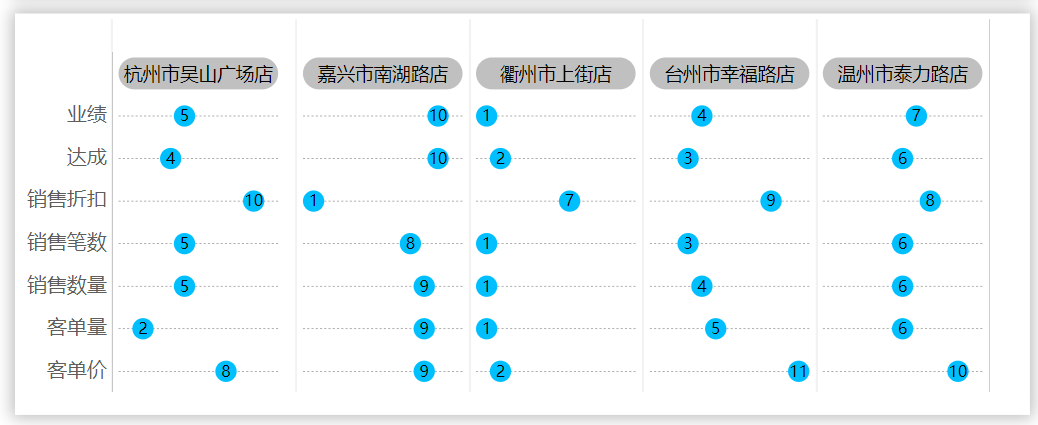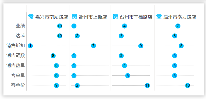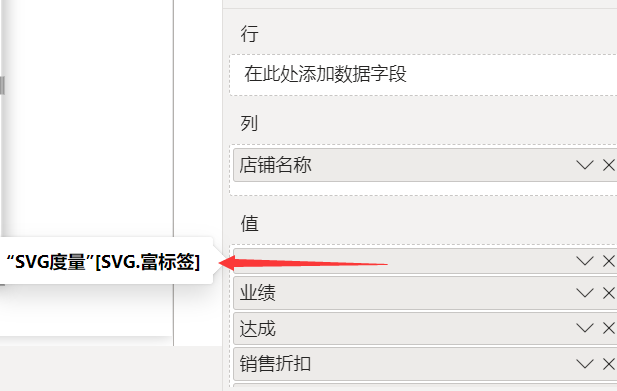 使用我分享的《Power BI 万能富标签生成器》将店铺名称列转换为SVG度量值。把该度量值标记为图像URL,存放在值区域的最前面,并双击修改名称为空格。