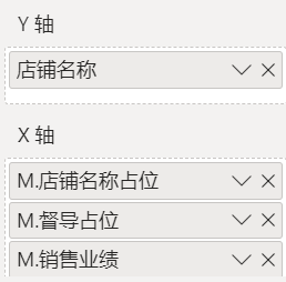 关闭XY轴,并打开数据标签。M.店铺名称占位的数据标签显示为店铺名称列,M.督导占位的数据标签显示为督导列。三个标签的位置都设置为端内。督导的标签颜色淡色设置。