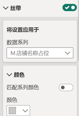 丝带打开,店铺名称和督导的丝带颜色设置为相同(此处为灰色),销售业绩的丝带透明度调整为百分百进行隐藏。