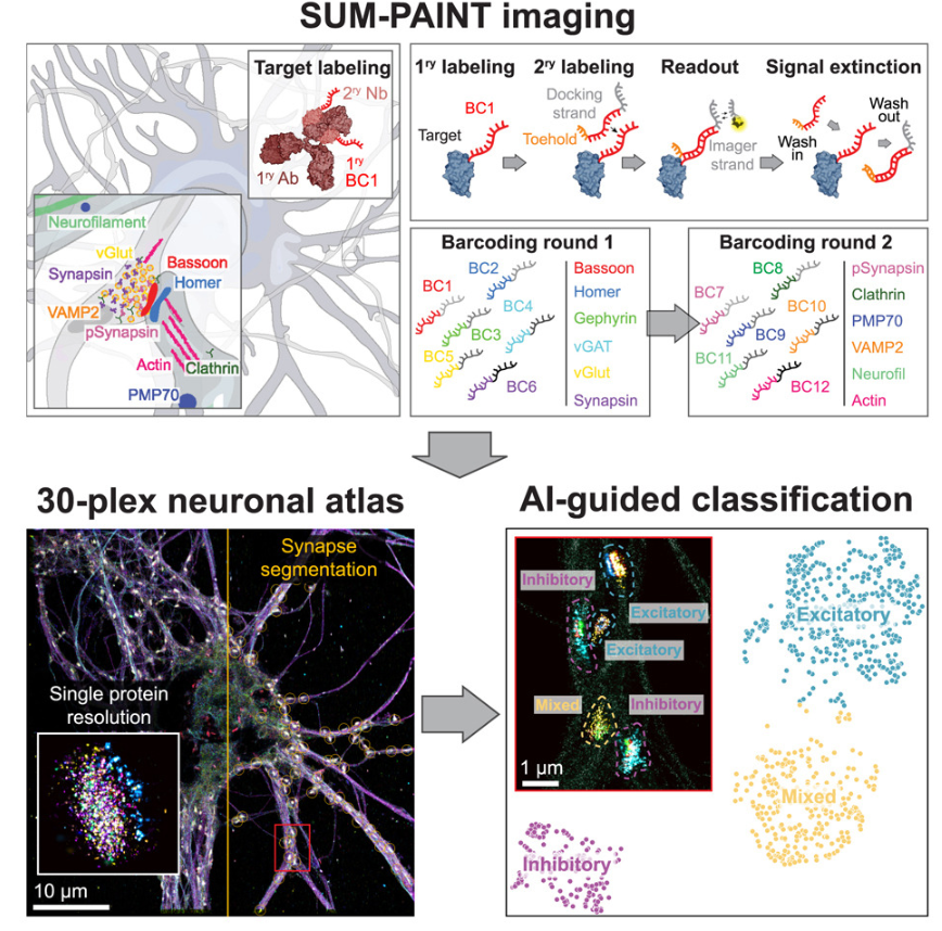 2024年3月28日,德国慕尼黑大学和马克斯普朗克生物化学研究所的Eduard Unterauer及其团队在Cell上发表了一篇题为《Spatial proteomics in neurons at single-protein resolution》的研究论文,开发出了一种新的超分辨率高通量成像方法:SUM-PAINT,首次允许对大量蛋白进行非常快速和几乎无限制的可视化观察和绘图。