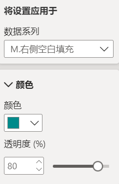 三个X轴字段的颜色设置为相同,但是填充条形的颜色透明度调大,本例为80%: