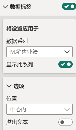 打开实际值的数据标签,并且位置设置为中心,填充度量值的标签关闭。