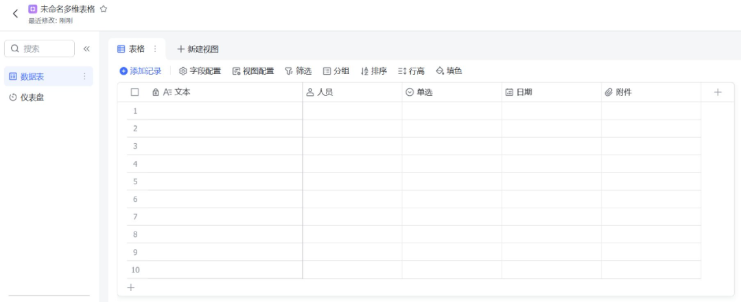 首先当然你得有一个飞书帐号,然后新建一个多维表格。