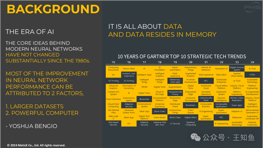 AI的进步依赖于数据,数据是AI模型成功的关键,特别是在深度学习领域,数据和存储能力至关重要。