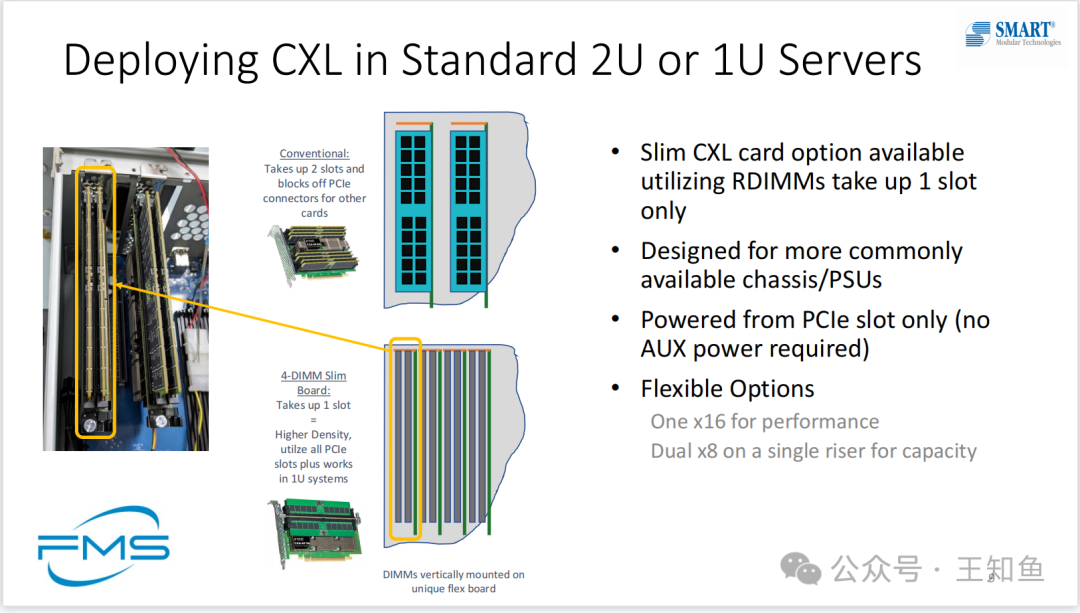 纤薄CXL卡选项:利用RDIMM,仅占用一个插槽位置,适用于更常见的机箱和电源单元(PSU)。
