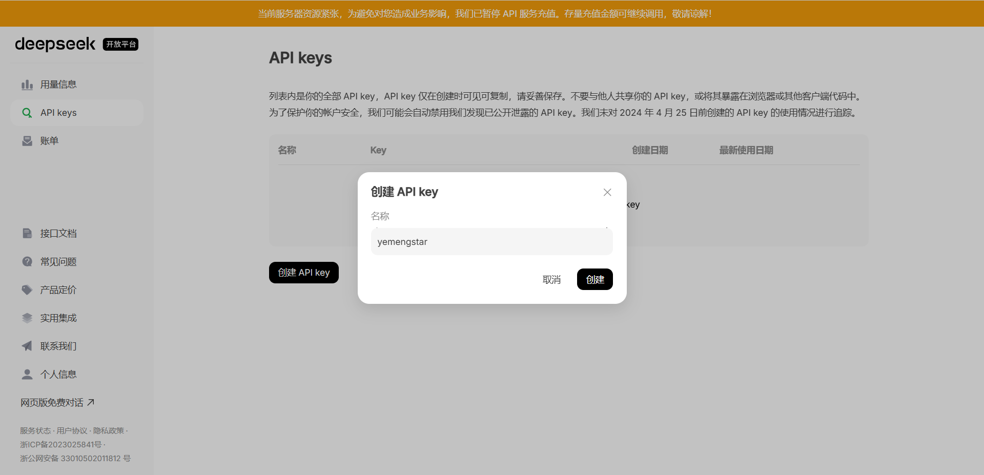 最近deepseek爆火,服务器也频频繁忙。夜梦这段时间问它问题,十次有九次都是“服务器繁忙,请稍后再试。”于是乎夜梦搜索一番,发现可以调用它的API避免这个问题。