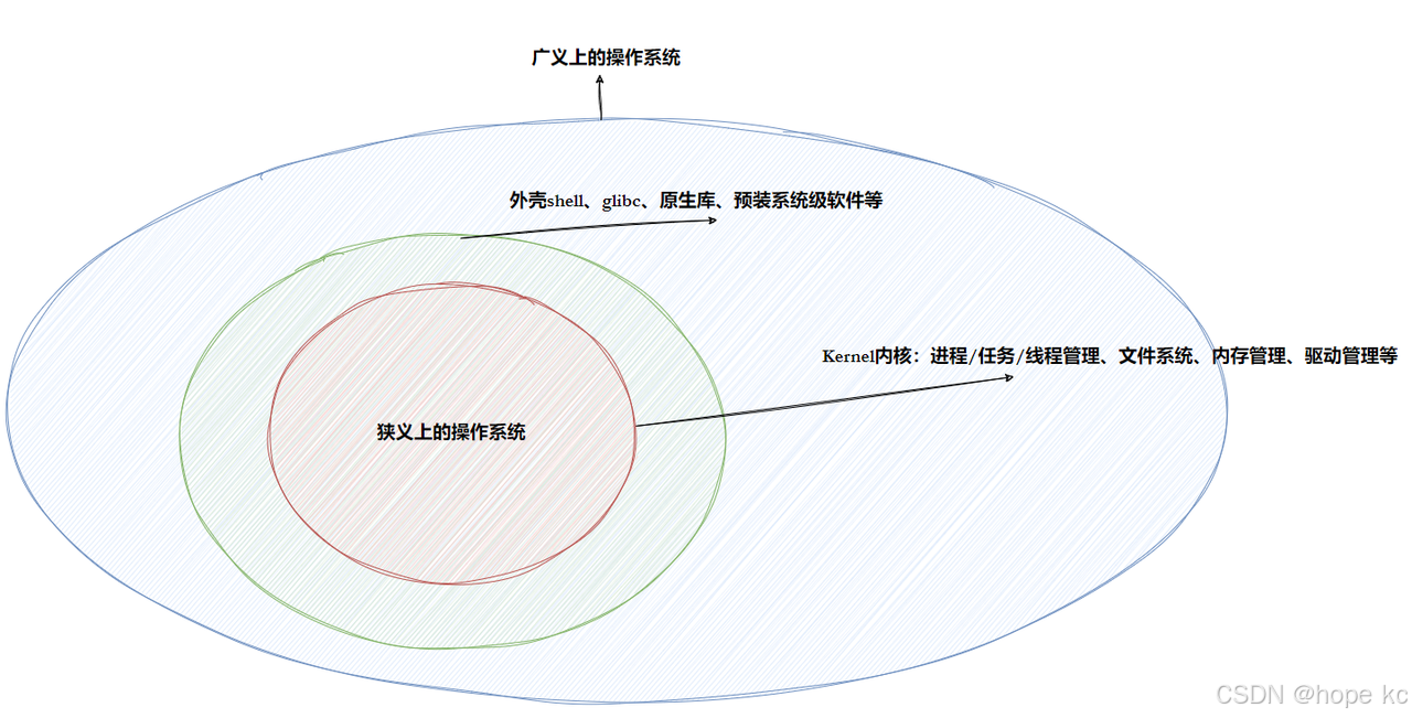 任何计算机系统都包含⼀个基本的程序集合,称为操作系统(OS)。笼统的理解,操作系统包括: