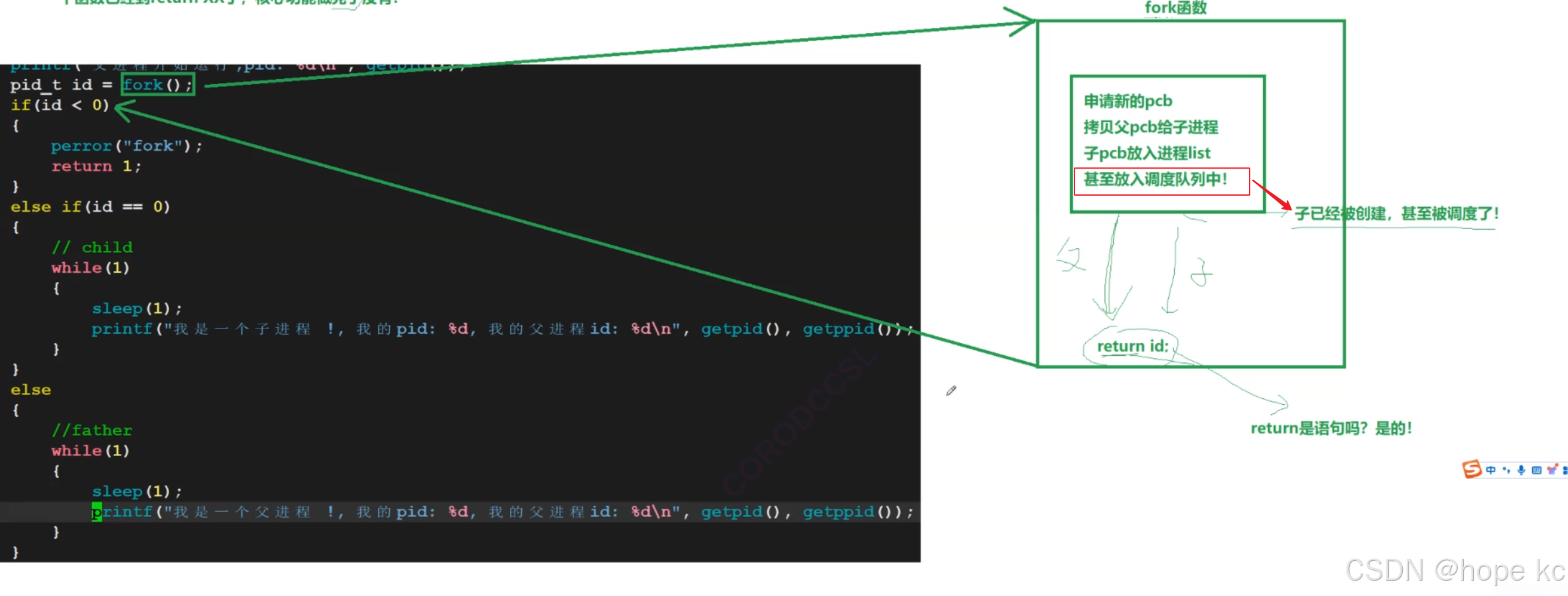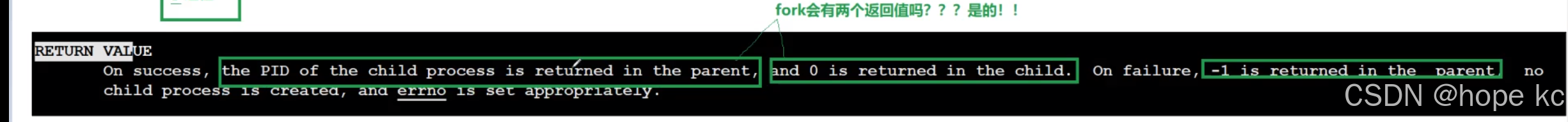 子进程的pid会返回给父进程,(2).0会被返回给子进程-----------所以fork有两个返回值!!!!