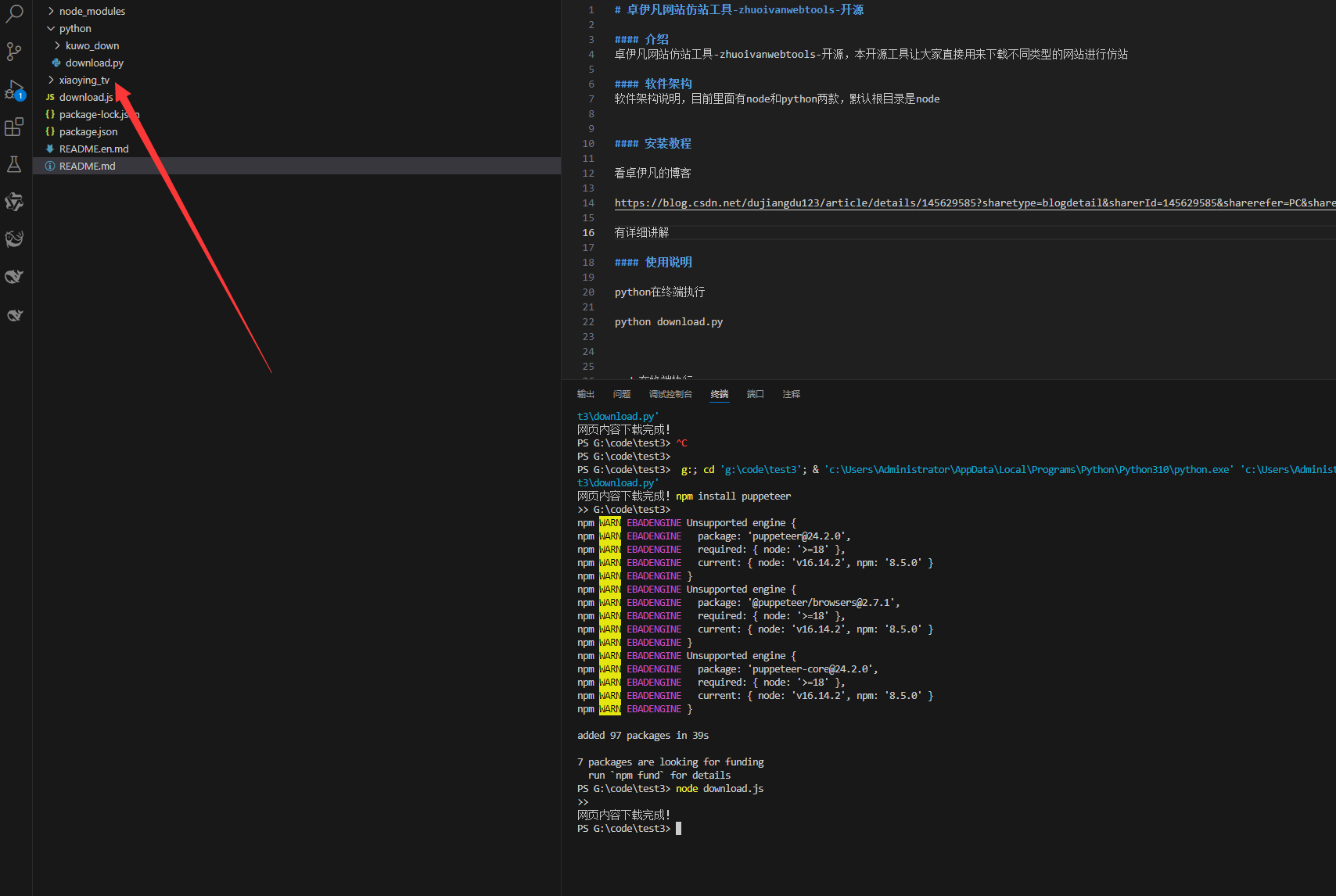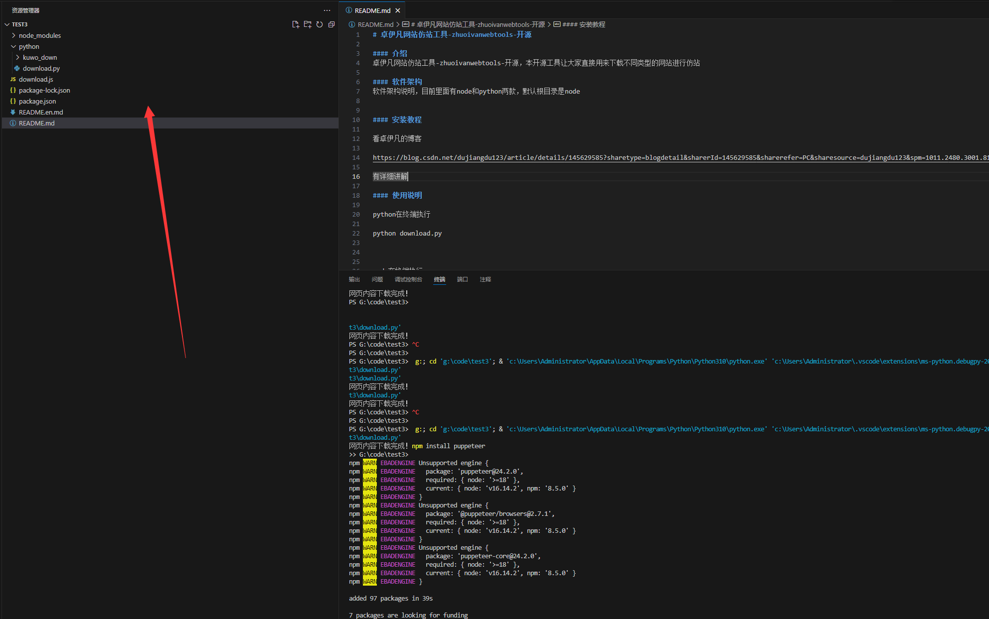 根据已知信息我们需要用到node.js,因此我们切换掉python,新建download.js