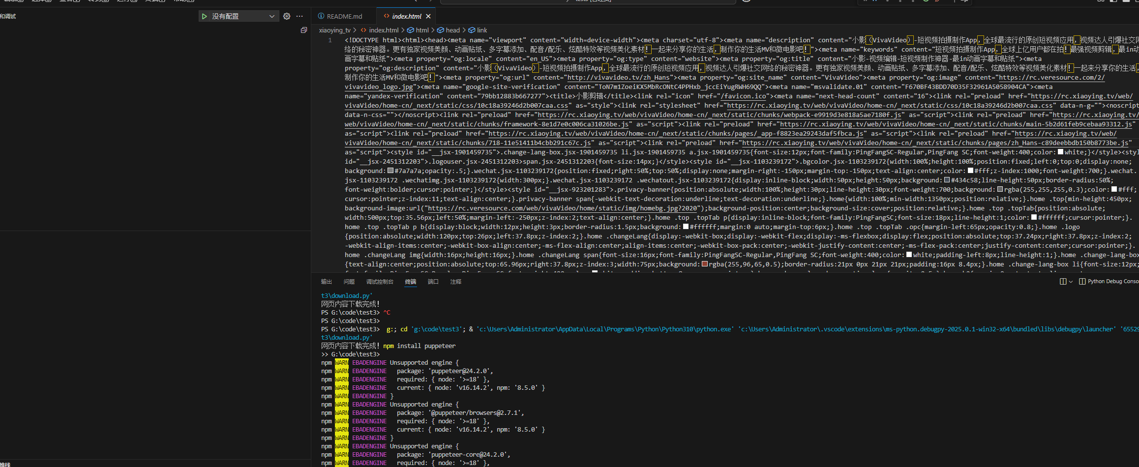 npm 安装 Puppeteer 库。/css 目录。/js 目录。/assets 目录。以下是使用 Puppeteer 爬取 Vue.js 编译后网站的示例代码:
