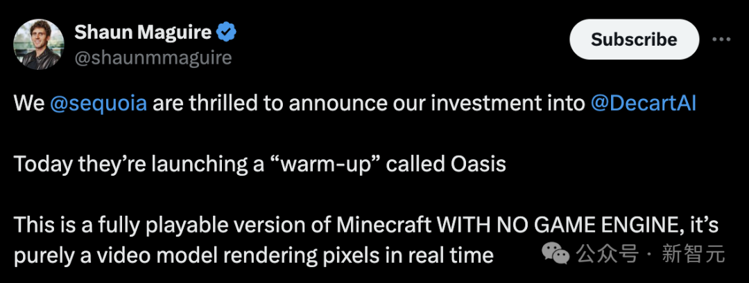 今天,红杉资本更是豪掷2100万美金对其进行了投资,合伙人Shaun Maguire更是大力称赞Decart的团队,认为他们是「超精英的AI工程师」、「合作过的技术最有天赋的团队之一」,正在将生成式体验推向极致。