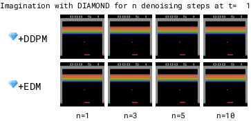 日内瓦大学、爱丁堡大学的研究人员提出了一个在扩散世界模型中训练的强化学习智能体DIAMOND(DIffusion As a Model Of eNvironment Dreams),文中分析了使扩散模型适应于世界建模(world modeling)所需的设计要素,并展示了如何通过改善视觉细节来提高智能体的性能。