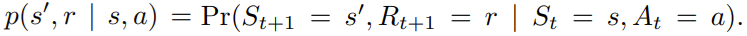 智能体和环境之间的交互可以表述为一个有限马尔可夫决策过程(MDP)(S, A, R, p),其中 S 表示状态集,A 表示动作集,R 表示奖励集,p : S × R × S × A → [0, 1] 表示转换的动态。在时间步骤 t,智能体处于状态 S_t,使用行为策略 b : A × S → [0, 1] 采取行动 A_t,然后根据转换动态: