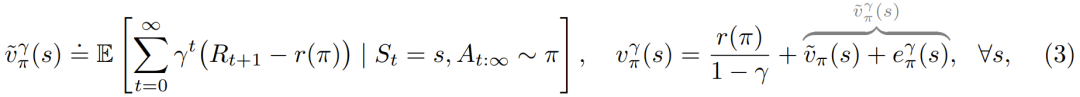 则是一个误差项,当折现因子变为 1 时变为零。状态值的这种分解也意味着状态-动作值有类似的分解。