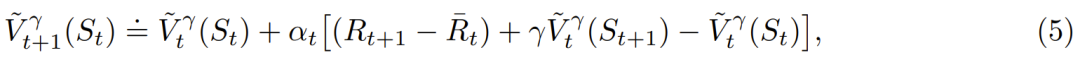 观察下一个状态 S_{t+1} 和奖励 R_{t+1}。 这里研究的问题是持续性问题,即智能体和环境的交互会无限地进行。智能体的目标是最大化长期获得的平均奖励。为此,该团队考虑了估计每个状态的预期折扣奖励总和的方法: