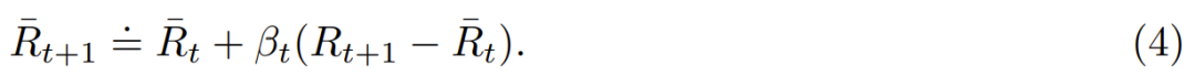 表示 t 个时间步骤后的平均奖励估计,则