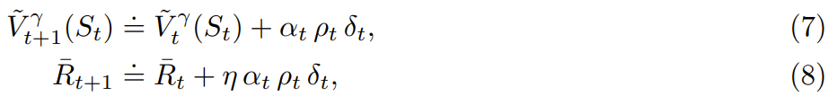 此外,他们还提出了基于价值的奖励聚中。这种方法的灵感来自强化学习的平均奖励公式。Wan et al. (2021) 表明,使用时间差分(TD)误差(而不是 (4) 中的传统误差)可以对表格离策略设置中的奖励率进行无偏估计。事实证明,平均奖励公式中的这个思路在折扣奖励公式中也非常有效。 该团队表明,如果行为策略采取目标策略所做的所有操作,那么可以使用 TD 误差很好地近似目标策略的平均奖励: