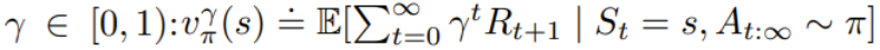 用数学表示的话,对于与折现因子 γ 对应的策略 π 的表格折现价值函数