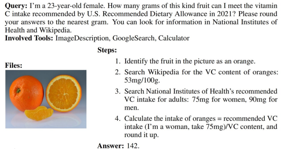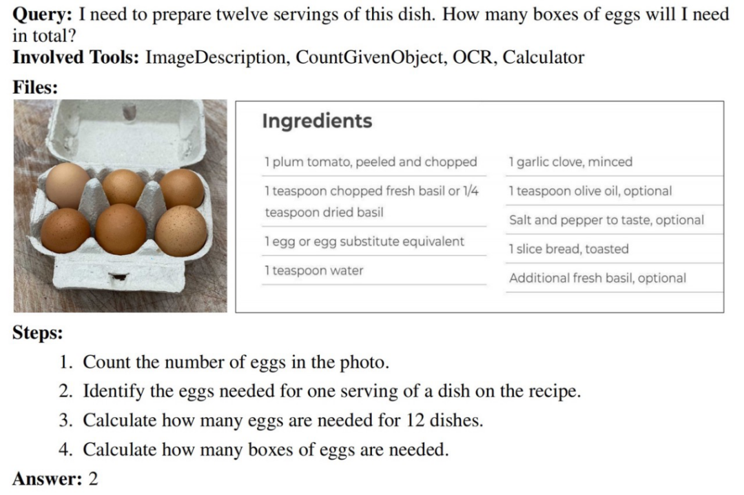 最终共得到 229 个真实场景下的任务,所有问题都隐含工具和步骤,并且包含多模态上下文输入。这些任务基于现实世界场景,目标明确且易于理解,完成任务对人类有帮助,但对于 AI 助手来说较为复杂。JSON 格式的数据示例可以在 Hugging Face 上找到。