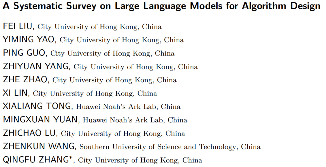 本文第一作者柳斐(https://feiliu36.github.io/ )是香港城市大学计算机科学系博士生,师从张青富教授。研究领域为计算智能,自动算法设计,组合优化等。姚一鸣,郭平,杨致远,赵哲和林熙来自香港城市大学张青富教授团队。陆智超为香港城市大学计算机科学系助理教授。王振坤为南方科技大学系统设计与智能制造学院助理教授。童夏良和袁明轩来自华为诺亚方舟实验室。