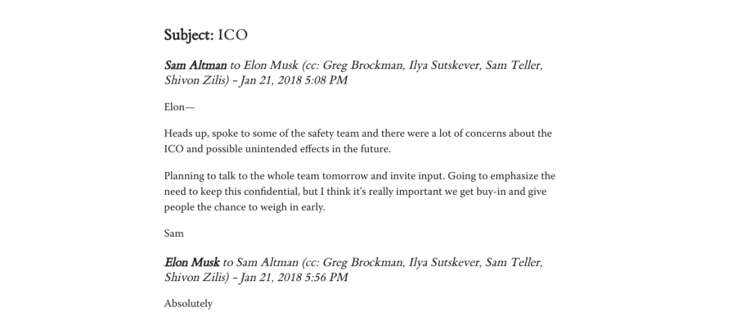 这件事发生在 OpenAI 为了解决没钱的问题,要不要改变非营利组织的架构,为此,他们也考虑过 ICO 上市。