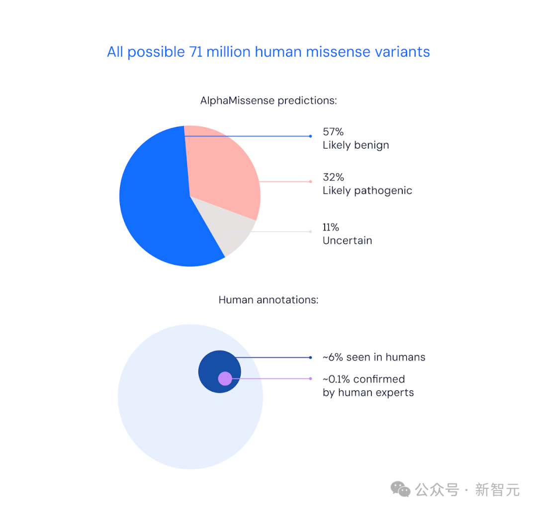 以基因研究为例,普通人平均有9000多个错义变异,大多无害,但少数会致病。现实中,仅能逐个测试蛋白质的影响。而AlphaMissense能快速分类7100万潜在变异中的89%,帮助科学家聚焦高风险变异,加速疾病研究。