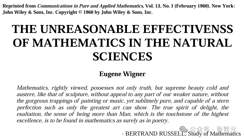 1960年,诺贝尔奖得主物理学家Eugene Wigner感叹数学方程在模拟自然现象(如行星运动)中「出乎意料的有效性」。