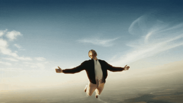 输入自己的照片,加一段「一个男人在飞」的prompt,让自己瞬间飞翔。