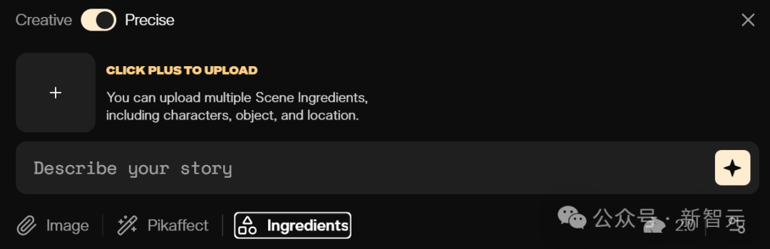 第一点,也是Pika 2.0最大的看点,就是新增的「场景元素」功能了。我们可以随意上传自己想要的角色、物体、服装、地点和场景设置,来创建想要的镜头。