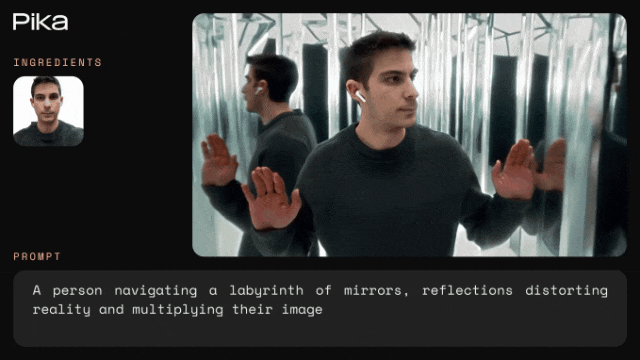 再比如,模特向镜头喷洒香水,以及镜像迷宫中的重重倒影,Pika 2.0都理解得十分准确。