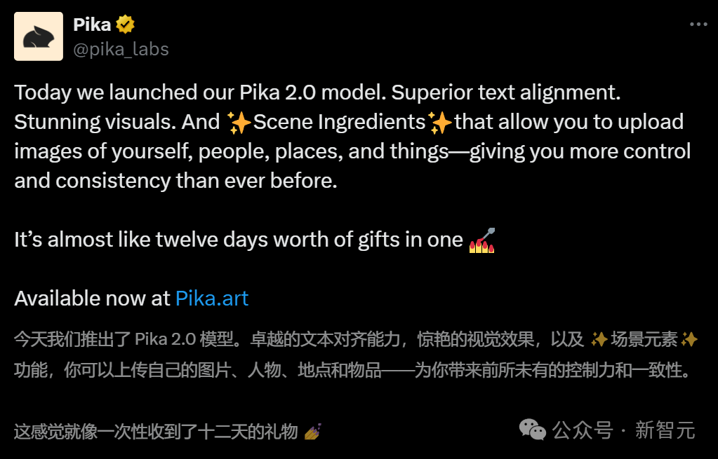 有趣的是,Pika官号这样描述道:这次的发布,「相当于一次性收到了12天的礼物」。