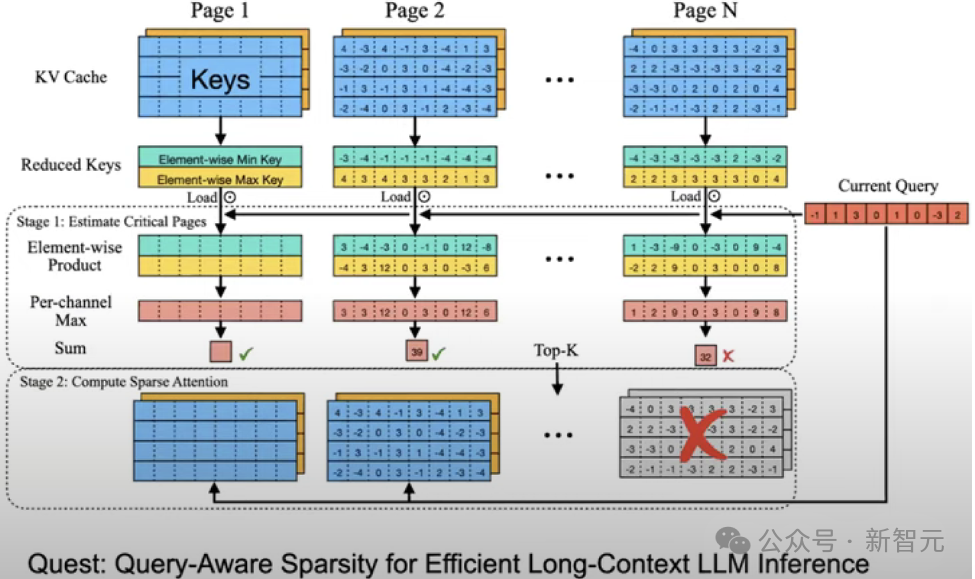 还有下面这种,通过重要性计算只选择topk个kv cache参与Attention计算,同样是稀疏矩阵的形式。