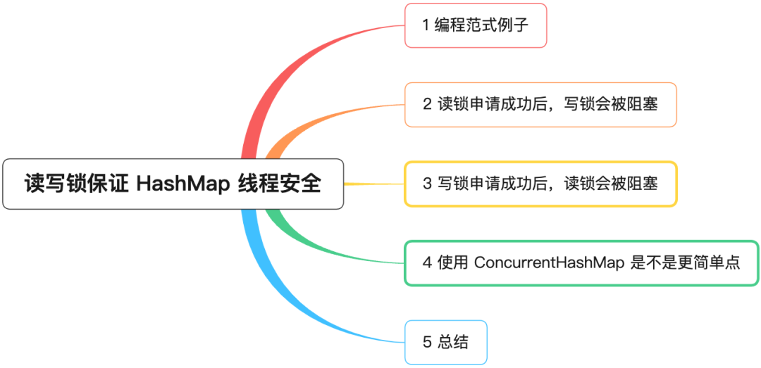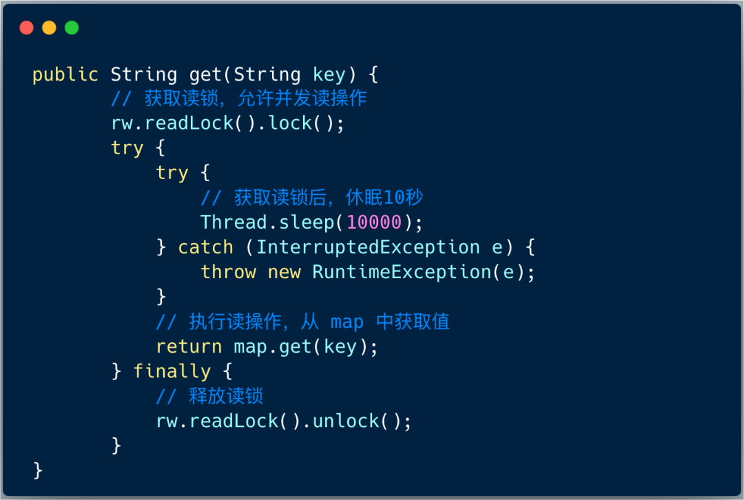 上图展示了使用读写锁对 HashMap 进行操作的编程范式,核心要点: