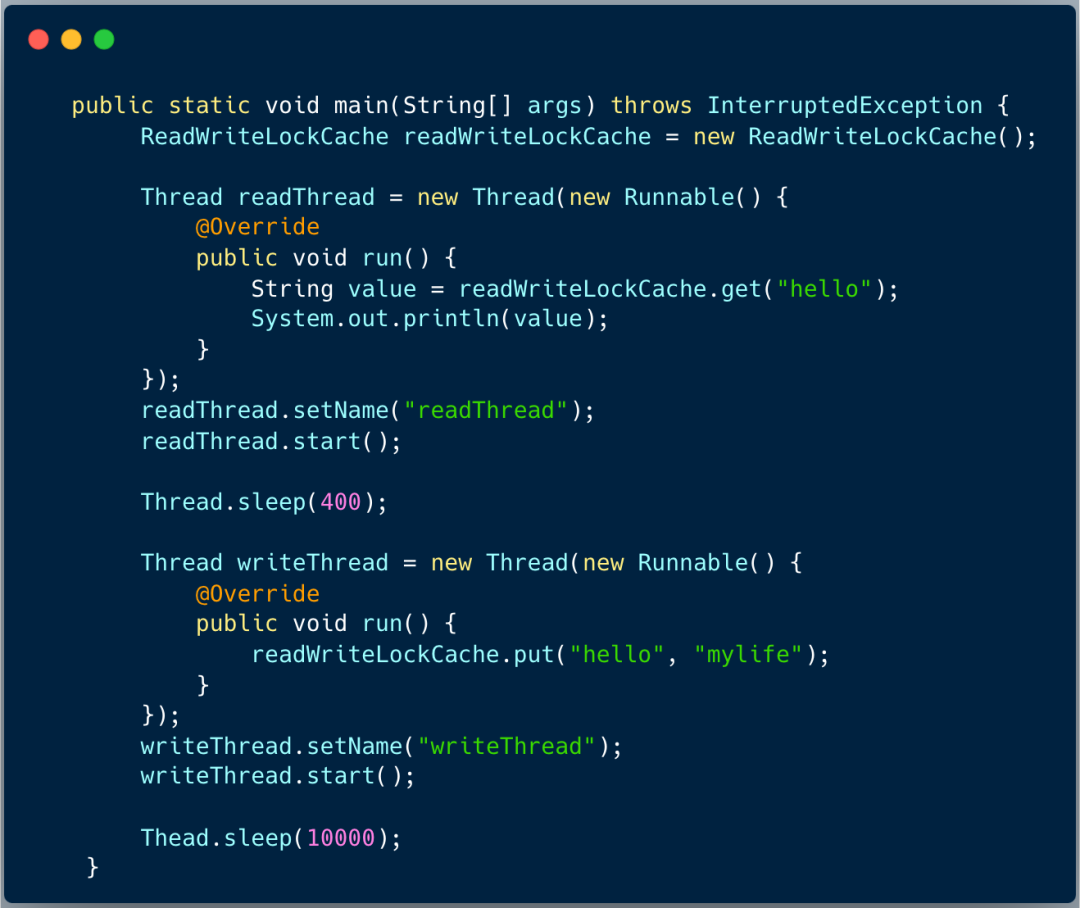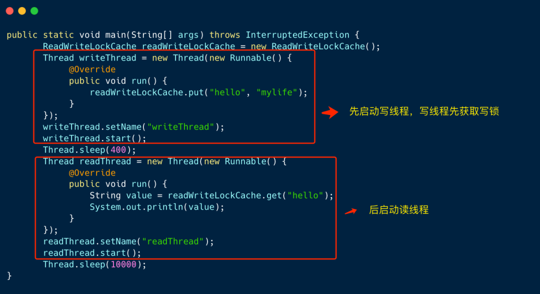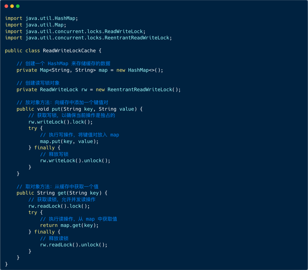 我们将 ReadWriteLockCache 的读操作代码还原,然后将写操作修改如下: