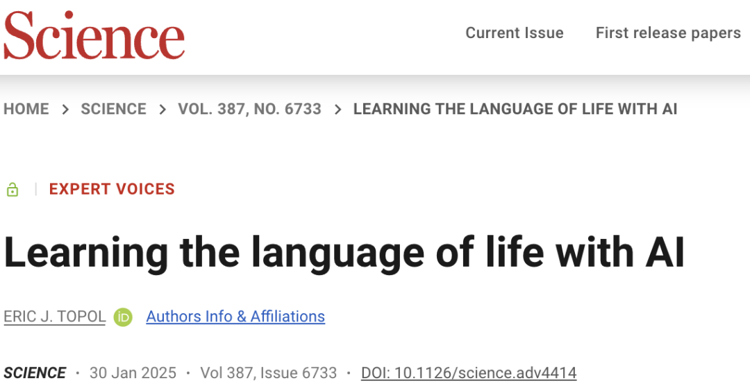 2025年1月30日,Science发表文章Learning the language of life with AI。文章主要讲述了人工智能通过构建生命大语言模型(LLLM)破解了从蛋白质折叠到基因调控、细胞运作的多维度生命密码,正在将生物学从观察科学转化为可设计、可编程的工程科学,开启生物医学研究、药物开发和生命本质认知的革命性时代。