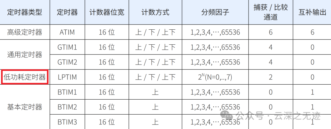 内部集成 1 个 16 位低功耗定时器(LPTIM),可以以很低的功耗实现定时或对外部脉冲计数的功能。通过选 择合适的时钟源和触发信号,可以实现系统低功耗休眠时将其唤醒的功能 。 可以延长系统的在线能力。