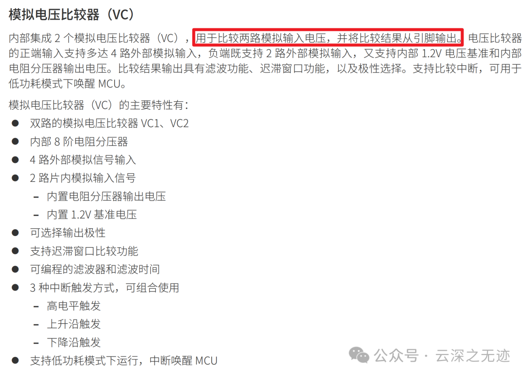 这个外设是很有特点的,离我们最近的比较器其实就是示波器的触发。当然我们也可以设计很多有趣的东西,比如监控电压什么的,如果没有这个外设,我们是需要使用额外的器件完成工作的,但是内置就不一样了。