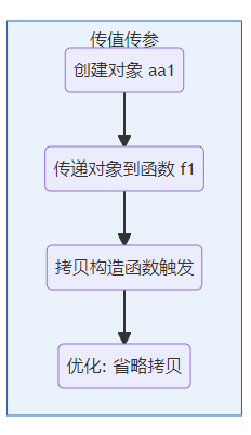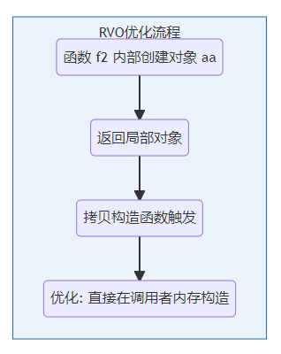 为了更好地理解这些优化机制,我通过Mermaid生成了流程图,展示了传参、返回值优化和赋值操作的具体执行流程。通过这些图示,你可以更直观地了解编译器在对象拷贝时如何减少多余操作。