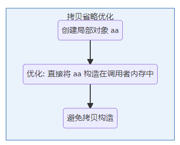 的内存中构造返回的局部对象,避免中间的拷贝过程。这种优化通过 拷贝省略 完成。