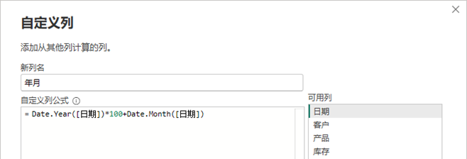 STEP 1 PowerQuery获取数据后,点击菜单栏添加列下的自定义列,新增一列年月,用作辅助列。