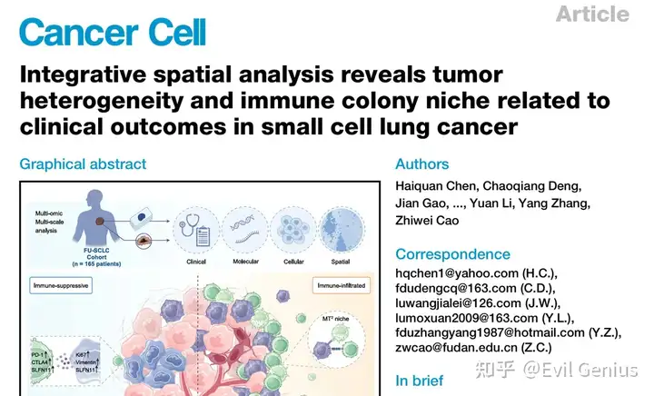 文献分享---综合空间分析揭示了小细胞肺癌肿瘤异质性和免疫colony生态位与临床结果的关系