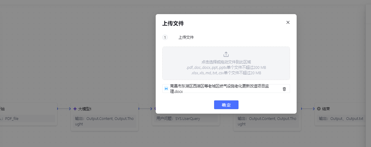 根据标书写作业务来说,一般用户通常进行上传文件(多为PDF格式)之后,就开始询问或者直接让写作了,通过工作流编排我们能够缩短大模型解读文件时间,比如: