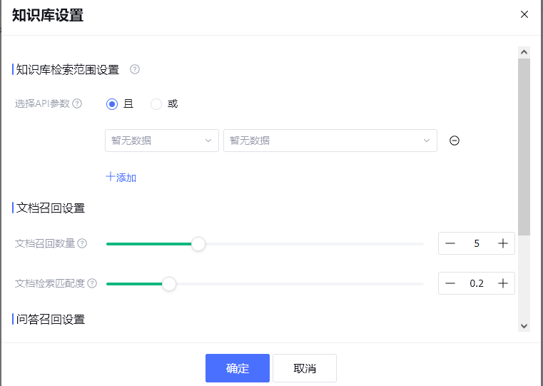 首先是知识库检索范围设置:知识库检索范围设置用于配置 API 参数和标签名称的映射关系,实现不同身份用户提问检索不同的知识范围的场景。
