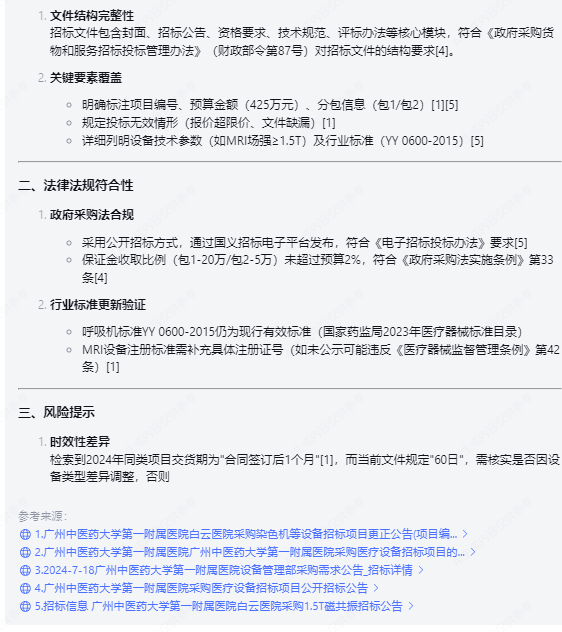 格式校对与一致性检查:招标文书的格式要求非常严格,尤其是对于多个章节、表格、标题等的统一排版。AI 可以自动检查文书的格式是否符合要求,包括字体、标题级别、表格布局等。同时,AI 还可以确保文档的风格一致,避免不同部分的写作风格不统一,减少人为错误。AI 还能对文档中的图表编号、交叉引用等进行智能检查与修正,保证文档的严谨性。