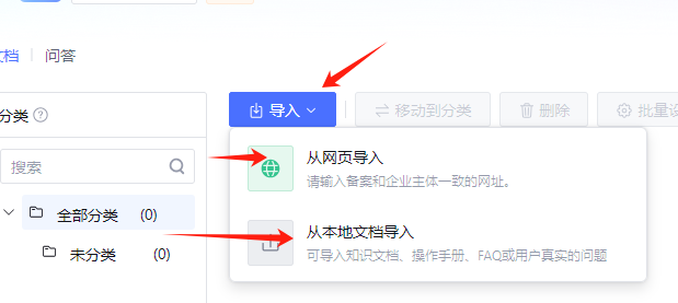 在页面知识库看到我们可以根据文档来上传知识,点击知识管理我们可以更好处理知识库中的数据。