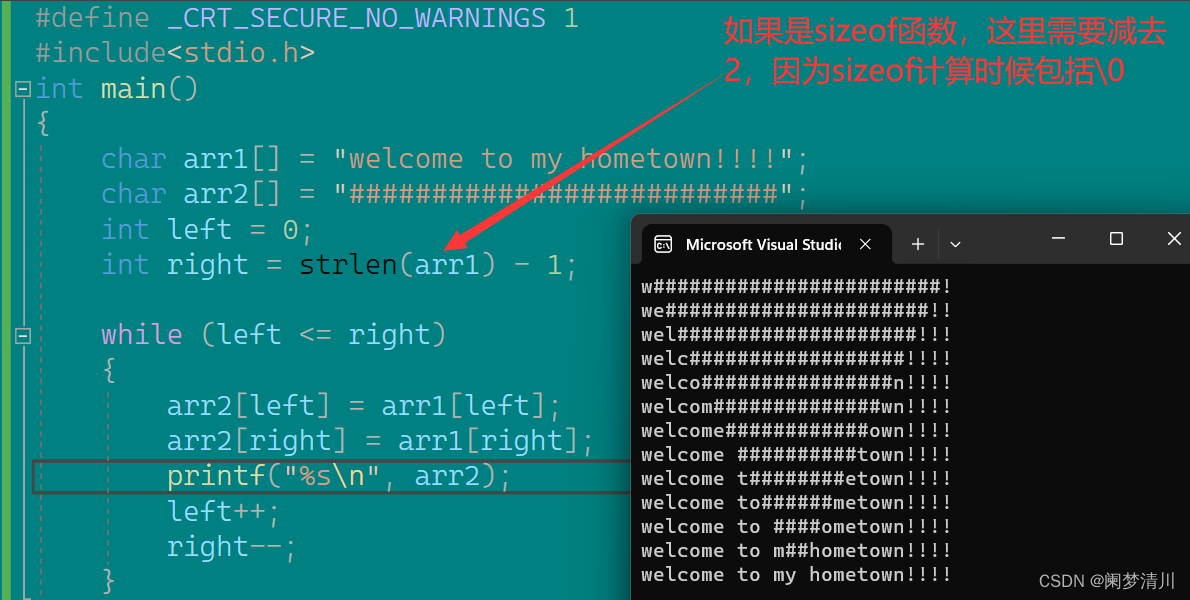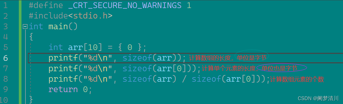 但是sizeof在计算数组所占内存的大小的时候,不会关心\0;