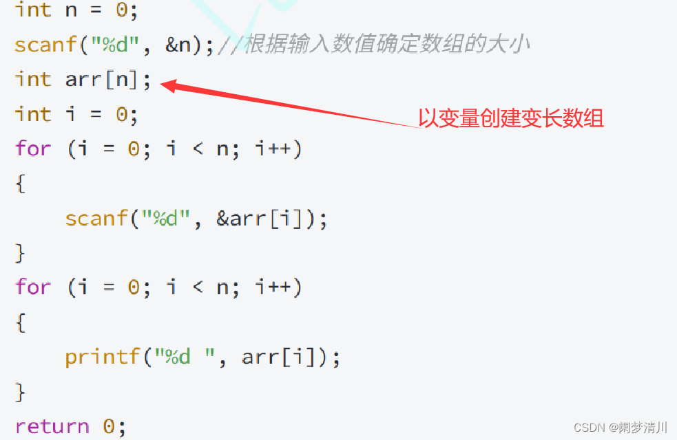 用变量指定数组大小,不是数组的长短是变化的;VS不支持变长数组